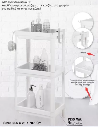 Ραφιέρα Μπάνιου Επιδαπέδια Πλαστική με 4 Ράφι...