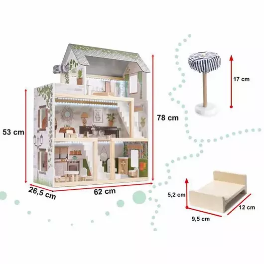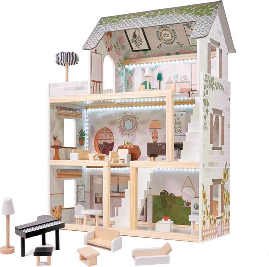Ξύλινο Παιδικό Κουκλόσπιτο Loco Lulilo Με Φωτισμό Led. 3 Ορόφους Σε Στυλ Boho 62x26.5x78cm