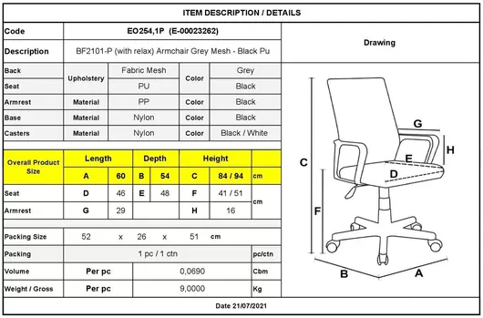 Καρέκλα Γραφείου με Ανάκλιση BF2101-P Γκρι / Μαύρο Woodwell