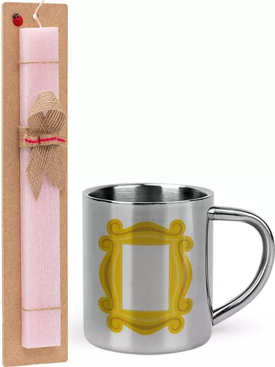 Πασχαλινή Λαμπάδα Friends Frame Πλακέ Σετ με Μεταλλική Κούπα Θερμός 300ml Ροζ