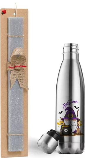Πασχαλινή Λαμπάδα Happy Halloween (Χαλοουίν) Πλακέ Σετ με Inox Παγούρι Θερμός 500ml Γκρι