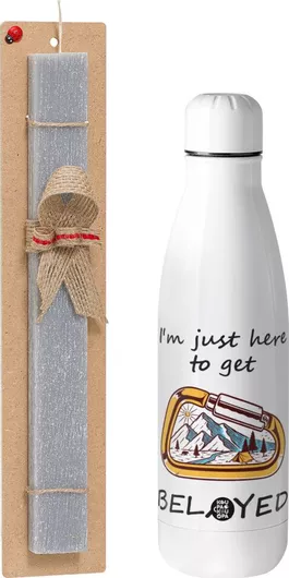 Πασχαλινή Λαμπάδα I'm Just Here To Get Belayed Πλακέ Σετ με Inox Παγούρι 700ml Γκρι