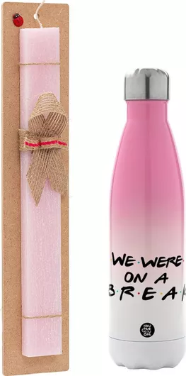 Πασχαλινή Λαμπάδα Friends We Were On A Break Πλακέ Σετ με Μεταλλικό Παγούρι Θερμός 500ml Ροζ