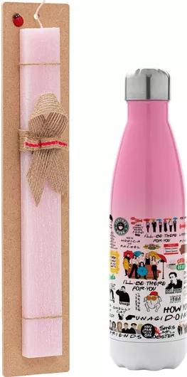 Πασχαλινή Λαμπάδα Friends Πλακέ Σετ με Μεταλλικό Παγούρι Θερμός 500ml Ροζ