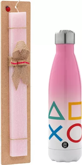 Πασχαλινή Λαμπάδα Gaming Symbols Πλακέ Σετ με Μεταλλικό Παγούρι Θερμός 500ml Ροζ