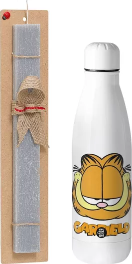 Πασχαλινή Λαμπάδα Garfield Πλακέ Σετ με Inox Παγούρι Θερμός 500ml Γκρι