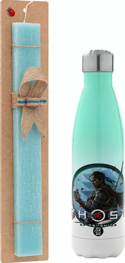 Πασχαλινή Λαμπάδα Ghost of Tsushima Πλακέ Σετ με Μεταλλικό Παγούρι Θερμός 500ml Τιρκουάζ