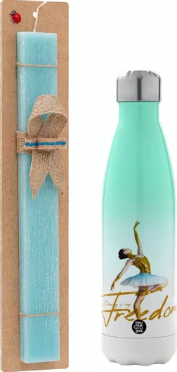 Πασχαλινή Λαμπάδα Gold Dancer Πλακέ Σετ με Μεταλλικό Παγούρι Θερμός 500ml Τιρκουάζ