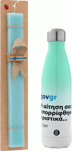 Πασχαλινή Λαμπάδα Govgr Πλακέ Σετ με Μεταλλικό Παγούρι Θερμός 500ml Τιρκουάζ