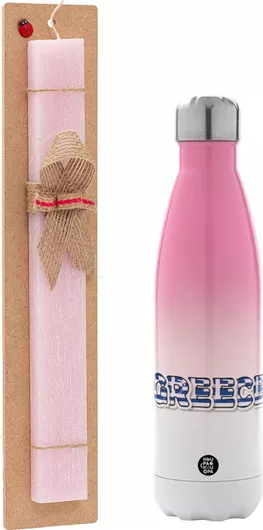 Πασχαλινή Λαμπάδα Greece Happy Name Πλακέ Σετ με Μεταλλικό Παγούρι Θερμός 500ml Ροζ