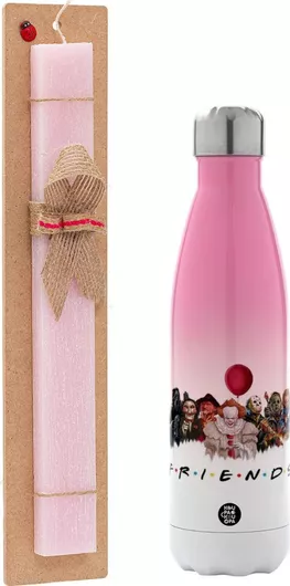 Πασχαλινή Λαμπάδα Halloween Friends Πλακέ Σετ με Μεταλλικό Παγούρι Θερμός 500ml Ροζ