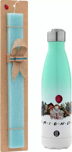 Πασχαλινή Λαμπάδα Halloween Friends Πλακέ Σετ με Μεταλλικό Παγούρι Θερμός 500ml Τιρκουάζ