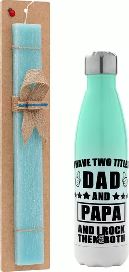 Πασχαλινή Λαμπάδα I Have Two Title Πλακέ Σετ με Μεταλλικό Παγούρι Θερμός 500ml Τιρκουάζ