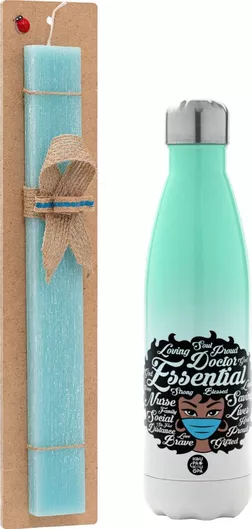 Πασχαλινή Λαμπάδα I Love Melanin Πλακέ Σετ με Μεταλλικό Παγούρι Θερμός 500ml Τιρκουάζ