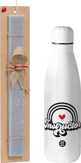 Πασχαλινή Λαμπάδα Instructor Πλακέ Σετ με Inox Παγούρι Θερμός 500ml Γκρι