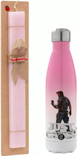 Πασχαλινή Λαμπάδα Just Gause Πλακέ Σετ με Μεταλλικό Παγούρι Θερμός 500ml Ροζ