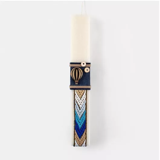 Πασχαλινή Λαμπάδα Tountzis 1852 Χειροποίητη με Ξύλινο Αερόστατο & Κουμπιά