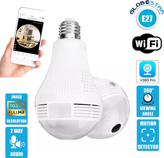 Κρυφή Κάμερα GloboStar 76073 WiFi Λάμπα 1080p με Υποδοχή για Κάρτα Μνήμης και Ανιχνευτή Κίνησης
