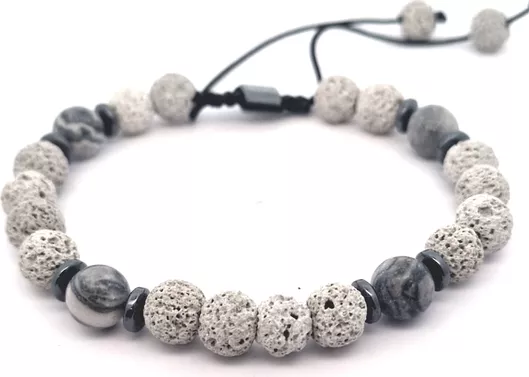 Ανδρικό Βραχιόλι Χειροποίητο από Ημιπολύτιμες Πέτρες Γκρι