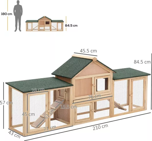 Κοτέτσι Pawhut 2 Επιπέδων Ξύλινο Μ2.1 x Π0.84 x Υ0.45m