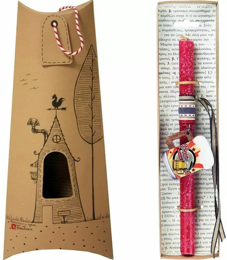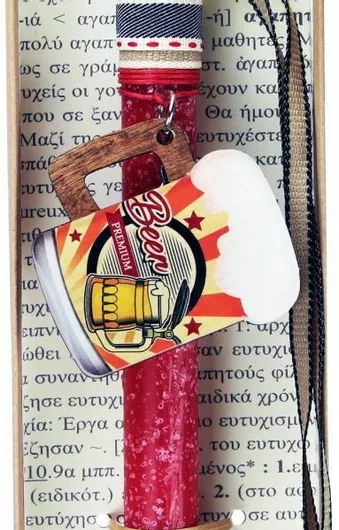 Πασχαλινή Λαμπάδα Synchronia LA22020G Τετράγωνη με Στολίδι Μπρελόκ Ποτήρι Μπύρα Κόκκινο