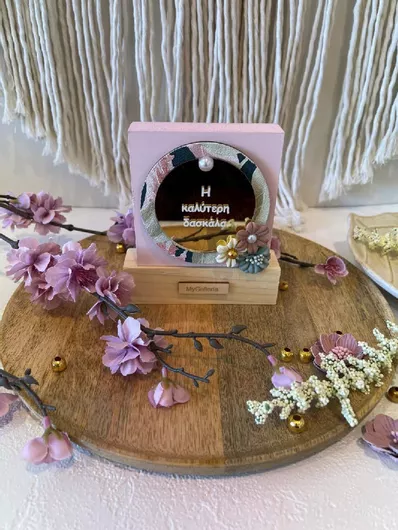 Γούρι για το Σπίτι Επιτραπέζιο Ροζ Η Καλυτερη Δασκαλα 12x13.5cm