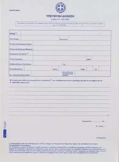 Υπεύθυνη Δήλωση του Ν.1599 / 1986 21x29cm 100...