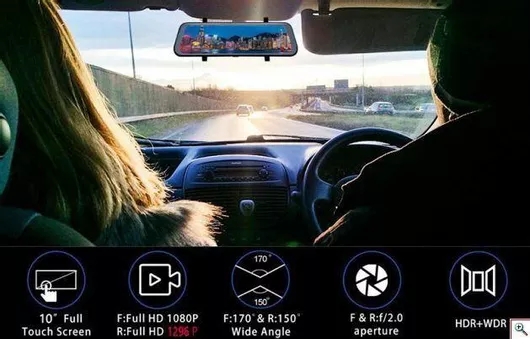 Σετ Καθρέπτης Αυτοκινήτου K470-23549 με DVR 1296P/Οθόνη 10" Κλιπ & Κάμερα Οπισθοπορείας