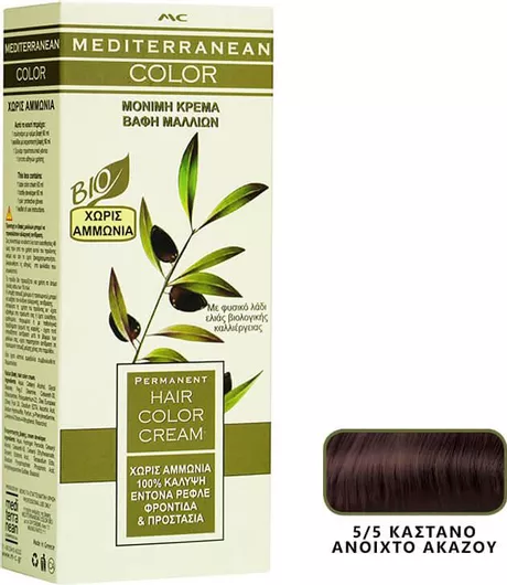Σετ Μόνιμη Βαφή Μαλλιών Mediterranean Bio 5/5 Καστανό Ανοικτό Ακαζού 60ml