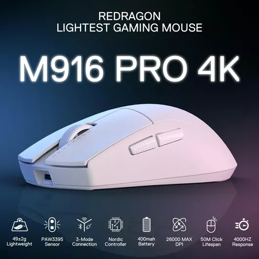 Gaming Ποντίκι Redragon M916 Pro 4K Ασύρματο 26000 DPI Λευκό