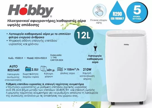 Ικανότητα Αφύγρανσης:12 lt/ημέρα