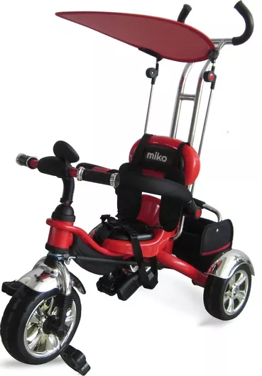 Παιδικό Τρίκυκλο Ποδήλατο Miko με Αποθηκευτικό Χώρο, Χειρολαβή Γονέα & Σκίαστρο για 12+ Μηνών Κόκκινο