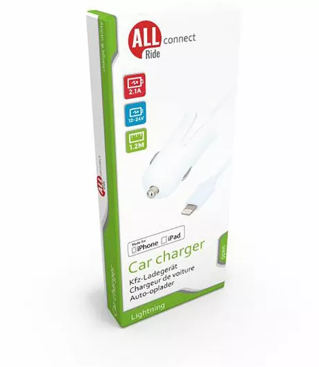 Φορτιστής Αυτοκινήτου Iphone Συνολικής Έντασης 2.1A μαζί με Καλώδιο Lightning