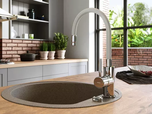 Μπαταρία Κουζίνας Ferro Zumba Ψηλή Σπαστή Πάγκου Μπεζ