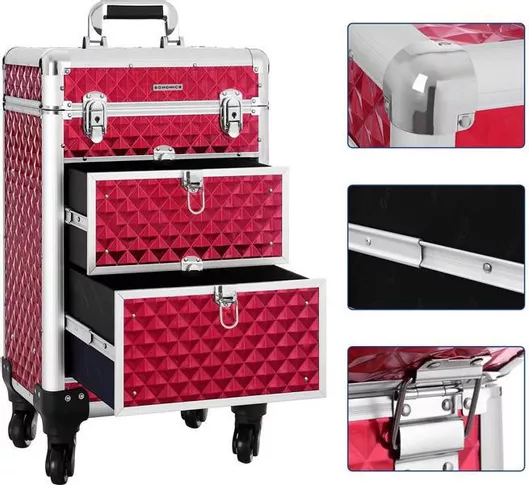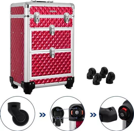 Βαλιτσάκι Αισθητικής Songmics Τροχήλατο Κόκκι...