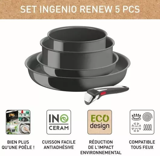 Σετ Μαγειρικά Σκεύη Tefal Ingenio από Αλουμίνιο με Αντικολλητική Επίστρωση L6549102 5τμχ