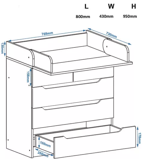 Βρεφική Συρταριέρα με 5 Συρτάρια 80x43x95cm Λ...