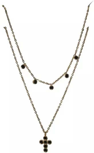 Mira-mira Κολιέ Από Ανοξείδωτο Επιχρυσωμένο Ατσάλι 14κ Με Διπλή Χρυσή Αλυσίδα Με Κρεμαστό Σταυρουδάκι Και Ζιργκόν Σε Μαύρο Χρώμα