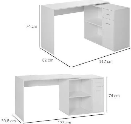 Γραφείο Γωνιακό Πολυμορφικό Λευκό 173x39.8x74cm