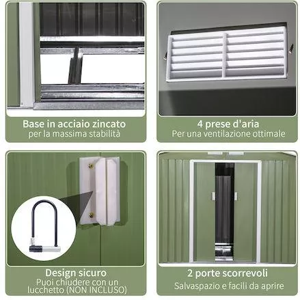Αποθήκη Κήπου Outsunny με Διπλή Πόρτα & Αεραγωγό Μέταλλο 2.77x1.95x1.92m Πράσινο