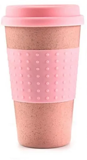 Κούπα Ποτήρι Μπαμπού με Καπάκι Ροζ 300ml