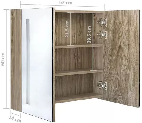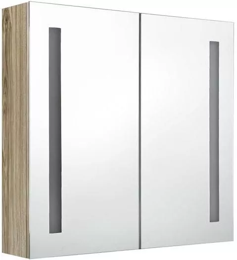 Καθρέπτης Μπάνιου vidaXL Ορθογώνιος Led από MDF με Ντουλάπι 62x60cm Καφέ