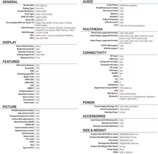 Τηλεόραση Tesla Smart 43S645BFS 43" Full HD LED HDR 2024