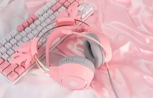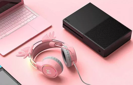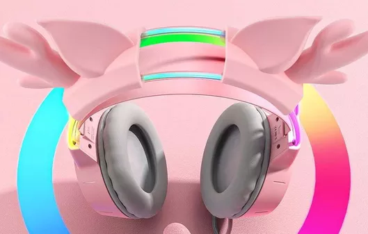 Onikuma X15 Pro Κέρατα Ελαφιού Over Ear Gaming Headset με σύνδεση 3.5mm/USB Ροζ