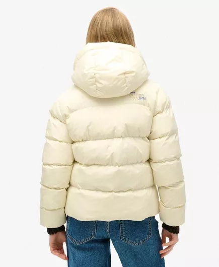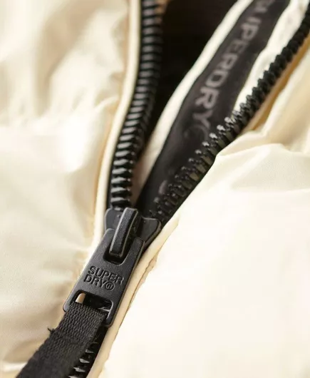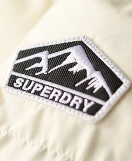 Superdry Κοντό Γυναικείο Puffer Μπουφάν για Χειμώνα Εκρου