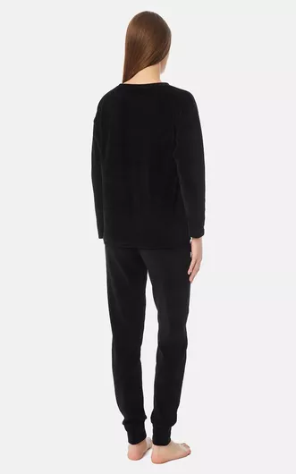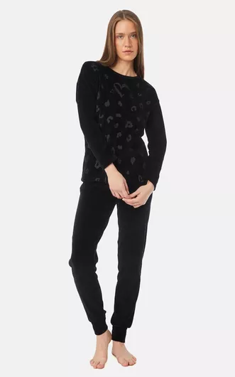 Minerva Χειμερινό Γυναικείο Σετ Πιτζάμας Βαμβακερό Μαύρο