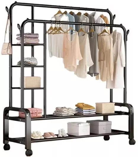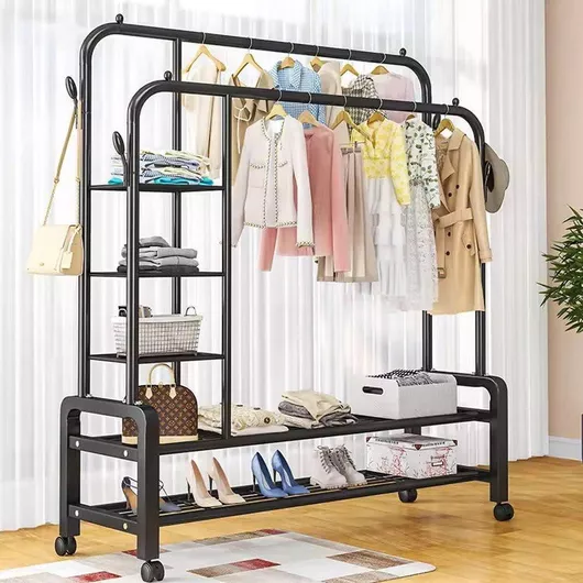 Factory Τροχήλατη Κρεμάστρα Δαπέδου από Μέταλλο Μαύρη 110x160cm