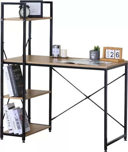 Γραφείο Ξύλινο με Βιβλιοθήκη Μαύρο με Μεταλλικά Πόδια 100x52x122cm
