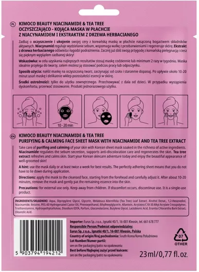 Kimoco Μάσκα Προσώπου για Καθαρισμό 23ml