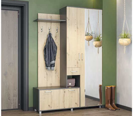 Έπιπλο Εισόδου Tova με Καθρέπτη / Κρεμάστρα & Παπουτσοθήκη 140x37.5x209cm Ανθρακί
